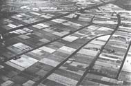 Het eerste ontwerp voor de zegel van 6 cent was afgekeurd, dus andere foto’s gekozen. Twee luchtfoto’s deze keer. Het raadhuis van Zierikzee en een nieuwbouwwijk in Amsterdam Zuid. Het raadhuis werd uit de luchtfoto gelicht en de nieuwbouwwijk werd gespiegeld.