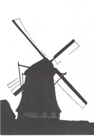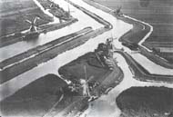 De molen deed het beter. Gefotografeerd bij Kinderdijk. Met als achtergrond een luchtfoto van dat gebied.
