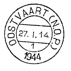 Bedoeld wordt Oostvaart in de Noord-Oost Polder, drooggevallen op 9 september 1942. In1943 en 1944 werd in de polder een barakkenkamp opgericht ten behoeve van de arbeiders die de polder geschikt moesten maken voor grootschalige landbouw. In dat kamp werd een klein poststation gevestigd behorende tot het ressort van het postkantoor Zwartsluis. En de stationhouder kreeg een dagtekeningstempel en een lakzegel. Het poststation was niet zozeer bestemd om brieven e.d. te verwerken, maar vooral om de postwissels uit te betalen aan de in de barakken wonende arbeiders.