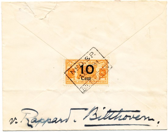 Opvallend is de naam van de geadresseerde: H.A. ridder van Rappard. Een zeer bekende naam in de Nederlandse politiek. Maar deze H.A. is niet degene die lid was van onder andere de Tweede Kamer der Staten-Generaal, want hij leefde van 7 maart 1824 tot 4 oktober 1877. Of kan het zijn zoon zijn geweest? Maar die heette A.G.Æ. ridder van Rappard en was ook lid van de Tweede Kamer en van de Eerste Kamer. Hij werd geboren op 30 augustus 1871 en overleed op 25 mei 1946.