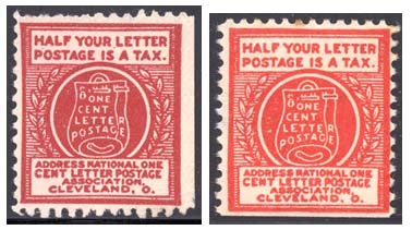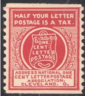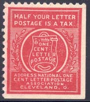 De ´National One Cent Letter Postage Association´ was een organisatie opgericht om de verlaging van het eersteklas brieftarief in de V.S. van 2¢ naar 1¢ aan de kaak te stellen. De Vereniging werd in 1912 opgericht door Charles W. Burrows, die na zijn pensionering zich had terugtrokken uit de boekhandel om zijn tijd aan de campagne te wijden. Burrows geloofde namelijk dat het 2¢ brieftarief niet eerlijk was en dat de eersteklas gebruikers van het tweedeklas tarief door deze maatregel werden gesubsidieerd. Het eersteklas brieftarief was 2¢ vanaf 1885 en het tweedeklas tarief was 1¢ per pond. Grote uitgeverijen van periodieken e.d. profiteerden van de verlaging, maar kleine bedrijven zoals boekhandels moesten het volle tarief betalen. De organisatie had een kantoor in Cleveland, Ohio. Daar werden folders en pamfletten verspreid die opriepen tot steun van het doel Burrows. Naast de folders en een speciaal stempel, had Burrows etiketten laten maken in het formaat van een postzegel en, net als bij een postzegel, deze gegomd en van een tanding laten voorzien. Het waren velletjes van 5 bij 10 zegels. De tekst op deze etiketten was (vrij vertaald): EEN CENT / BRIEF / PORT in het midden, met aan de bovenzijde de HELFT van UW BRIEFPORT IS een BELASTING. Op de onderste helft van het etiket: ADRES NATIONALE EEN / CENT BRIEFPORT / VERENIGING / CLEVELAND, O. De etiketten waren gedrukt in rood kleur op wit papier en werden gratis gegeven voor gebruik door eigenaren van boekhandels en handels in de kantoorbehoeften. Men moest echter wel lid zijn van de vereniging voor 10 dollar per jaar. Hoewel de etiketten op postzegels leken, waren ze niet bedoeld om voor dat doel te worden gebruikt. Toch deden sommige leden dat en meestal werd dat niet onderkend door de postmedewerkers.