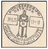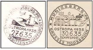 Verder werden twee bijzondere stempels gebruikt. Een met de tekst Cranz-Rossitten Schiffspost op 27 juni 1935 en de andere met de tekst Schiffspost Grosses Moosbruch op 30 juni 1935. De afdrukken moeten in zwarte inkt zijn. Rode en groene afdrukken zijn niet officieel door de postdienst aangebracht.