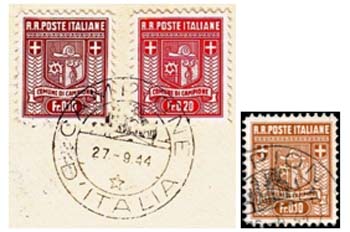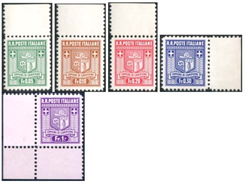 Gedurende de Tweede Wereldoorlog was Zwitserland neutraal. Campione was echter Italiaans en viel formeel onder het bewind van Mussolini. Doch Campione verkoos koning Victor Emanuel en in het laatste oorlogsjaar konden geen Italiaanse postzegels de stad meer bereiken omdat de verbindingen waren verbroken. Het gemeentebestuur van Campione liet daarop een serie van vijf postzegels drukken in franken, van 0.05 fr. tot en met 1 fr.