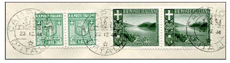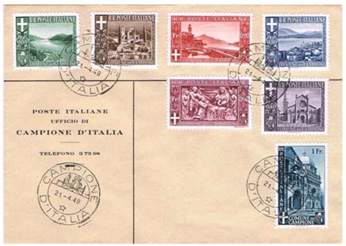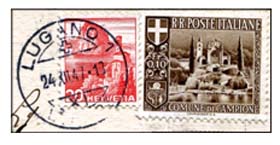Verder mengfrankeringen met Zwitserse postzegels. Echter, gebruikt als frankeerzegel in Zwitserland zelf, waren de zegels van Campione NIET geldig en werden dan ook niet gestempeld.