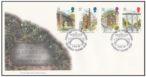 Voor de serie werd door Royal Mail een officiële eerstedag envelop uitgegeven. Deze envelop, beplakt met de serie, werd op 4 juli 1989 gestempeld met een afbeelding van de brug. Verwarrend is dat Telford ook een architect was en bruggen ontwierp, zoals de Menai Suspension Bridge, een grote hangbrug tussen Noord-Wales en het eiland Anglesey, maar hij heeft niets te maken met de Iron Bridge! Telford is in dit geval de naam van het bestuurlijke gebied waarin het dorp ligt en Salop is de oude naam voor Shropshire.