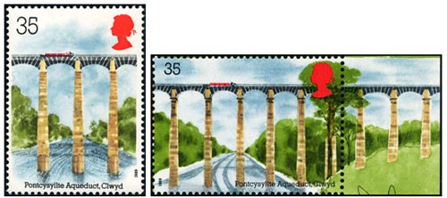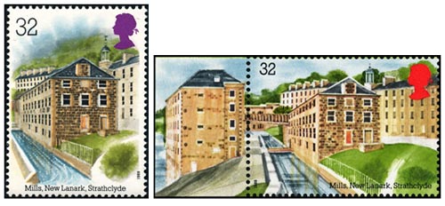 Ontwerper, Ronald Maddox, die eerder postzegels had ontworpen, vervaardigde tekeningen van vier markante bouwwerken die kenmerkend zijn geweest voor de industriële ontwikkeling van Groot-Brittannië. Hij maakte ontwerpen voor een serie staande zegels en een blokje waarin de zegels liggend werden afgebeeld. Dat hij daarbij soms enige vrijheden toevoegde bleek pas bij de bezichtiging van de bouwwerken.