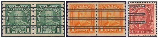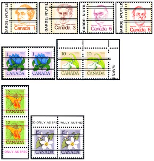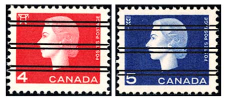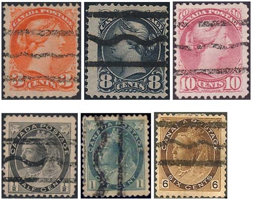 Omdat er vele verschillende typen voorafstempelingen van Canada bestaan laat ik hier slechts enkele veel voorkomende voorbeelden zien. Zoals de stempeling met drie lijnen in plaats van acht lijnen, zodat de afbeelding beter zichtbaar blijft.