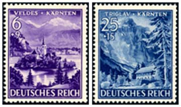 In 1941 werd Joegoslavië door Duitsland en Italië bezet en het noordoostelijke deel van Slovenië geannexeerd door het Derde Rijk. Twee postzegels verschenen 29 september 1941 met landschappen in Karinthië, de dorpen Veldes of Velden aan de Wörthersee en Triglav in de Julische Alpen, thans een Nationalpark, nu behorend tot Slovenië en Italië.