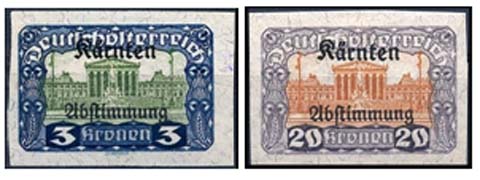 De postdienst gaf in september 1920 zelfs een serie van zes postzegels uit voor het bezette gebied, waarbij krantenzegels werden overdrukt met een nieuwe waarde, de letters K.G.C.A. en het jaartal 1920. De serie werd verkocht voor drie maal de nominale waarde aan de postloketten. De inwoners van Karinthië hadden een eigen ‘Volkswehr’ opgericht en bond een gewapende strijd aan met de troepen van de bezetter. Er werd toch een volksstemming gehouden in het Sloweense taalgebied, waarbij 40% van de Sloveens sprekenden zich tegen aansluiting bij Joegoslavië verzette. Ook de Duitstaligen waren tegen en zo bleef Karinthië Oostenrijks. Vanwege verkeerstechnische en om geografische redenen werden enkele dorpen in het zuidoosten van Karinthië, het Miestal, toch bij Joegoslavië gevoegd en enkele dorpen in het zuidwesten, het Kanaltal, bij Italië.