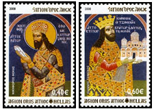De Griekse Postdienst besloot om vanaf 16 mei 2008 in samenwerking met de twee postkantoren op de Berg Athos ‘eigen’ postzegels te gaan uitgeven. De eerste serie bestond uit vijf waarden. Op 13 juni 2008 werd een tweede serie van vijf waarden uitgegeven. Zo ging men door met uitgeven en in november 2014 waren al meer dan 150 postzegels verschenen. En niet alleen gedrukt in Griekenland maar ook door Joh. Enschedé te Haarlem. Of de monniken op het schiereiland de postzegels veelvuldig gebruikten voor de frankering van hun brieven? Ik betwijfel het, maar dat het wel een extra inkomstenbron was voor de Griekse Postdienst is wel zeker! Dus komt u een poststuk tegen gefrankeerd met Griekse postzegels maar met de naam ‘Agion Oros Athos’, bewaar deze dan goed want dat kan een zeldzaamheid worden.