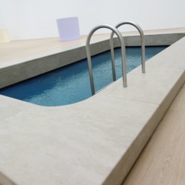 In een hoek van een museumzaal is een ‘gewoon-huis-tuin-en-keuken-buitenbad-met-afdaaltrapje-en-gevuld-met-rimpelend-water’ zichtbaar als een permanent museumobject. Je kunt het ‘kunstwerk’ van bovenaf bekijken, maar dan valt er geen afwijkende bijzonderheid te bespeuren. Nabij het zwembad leidt een trap naar beneden. Aan het eind van de trap geeft een ‘deur’ toegang tot het ‘interne-van-het-zwembad’. Het ‘plafond’ van het blauw gekleurde ‘zwembad’ bestaat uit 15 cm water.