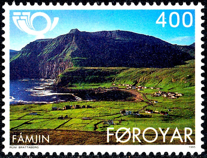 De tweede postzegel geeft een beeld van het dorpje Fámjin op het eiland Suderoy. Het dorp heeft ongeveer 100 inwoners. In de zomermaanden wordt dit aantal vaak verdubbeld. Het dorp heeft een mooi witgeschilderd kerkje met een grijs leien dak. Het heeft een beschutte haven. Vanaf de bergen lopen kleine stroompjes richting zee, maar er zijn ook een kleine en grotere watervallen en stroomversnellingen. Voor de twee zegels werden foto’s gebruikt gemaakt door Rúni Brattaberg, een bas- en operazanger geboren in Vágur.