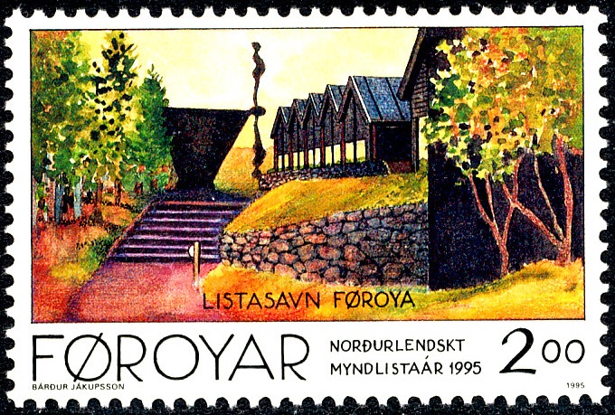 Een serie van drie postzegels werd gewijd aan de schilderkunst. De serie verscheen op 12 juni 1995 en was vormgegeven door Bádur Jákupsson. De eerste postzegel heeft als afbeelding het Nationaal museum voor de Kunst, Listasavn in Thorshavn. De sculptuur komt heel bekend voor en is eerder afgebeeld op een postzegel uit 1993. Een sculptuur met de naam Spejling, wat ‘Reflectie’ betekent en is vervaardigd door Hans Pauli Olsen.