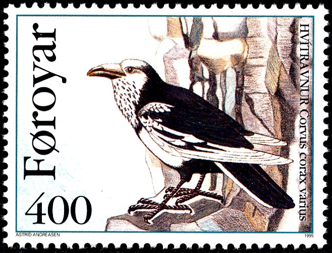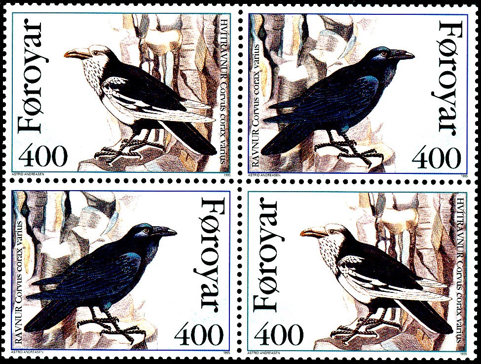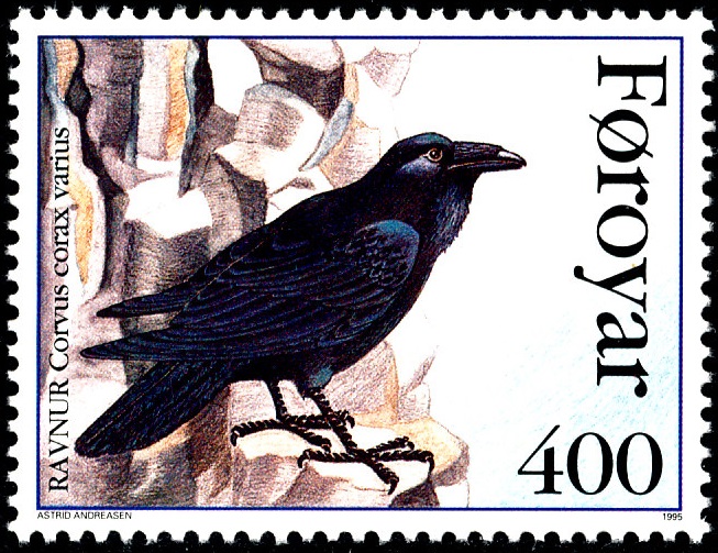 Astrid Andreasen ontwierp twee postzegels met afbeeldingen van raven in de noordelijkste streken van Europa, ook op de Faroer eilanden. De twee postzegels werden uitgegeven op 12 juni 1995 en verschenen zowel in velletjes van 20 stuks als in een postzegelboekje. Op de eerste postzegel is een noordelijke raaf afgebeeld die volledig zwart is en nog volop voorkomt.
