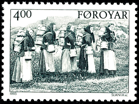 De drie postzegels uitgegeven op 12 september 1995 werden gegraveerd door Czes?aw S?ania en hadden afbeeldingen met betrekking tot het dagelijks leven op de Faroer eilanden. Op de eerste zegel zijn vrouwen afgebeeld die gaan melken of al hebben gemolken.