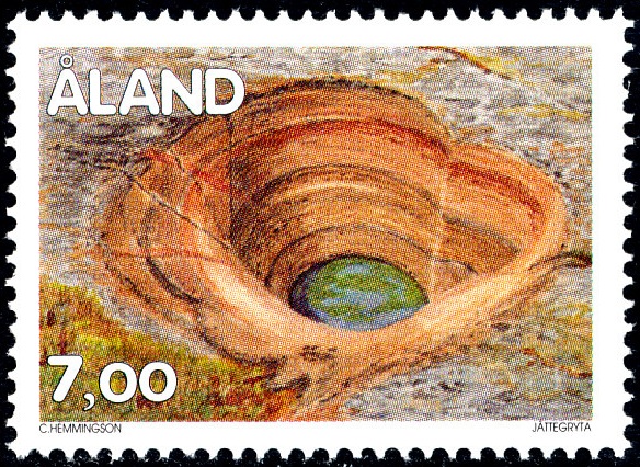 Op 2 januari 1995 verscheen de tweede serie met afbeeldingen van rotsformaties. In 1994 stonden op de postzegels alleen namen van de geologische formaties vermeld en dit jaar was dat eveneens het geval. Op de eerste postzegel is een tijdens de IJstijd gevormde rots te Källskar Kännen. Deze rotsformatie is te vinden op het ‘Baron Eiland’ zoals het eiland Källkar ook wel wordt genoemd. Excursies naar dit eiland worden georganiseerd vanuit Kökar.