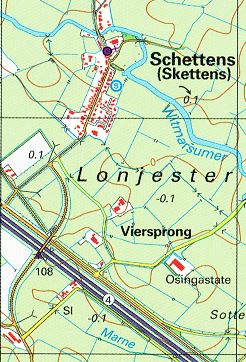De U-vormige gracht om de boerderij Osingastate is nog het enige zichtbare onderdeel van de vroegere adellijke state.
