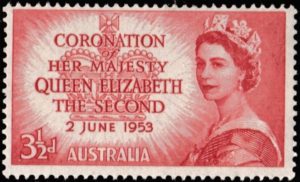 Australië gaf al op 25 mei 1953 een serie van drie postzegels uit met één ontwerp in de waarden van 3½D, 7½D en 2Sh in de kleuren rood, violet en blauwgroen.