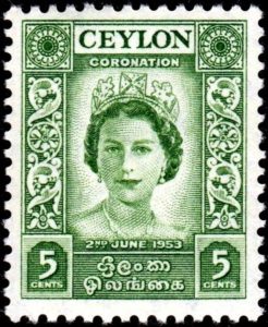 Op 2 juni 1953 gaf Ceylon een postzegel uit in de waarde van 5 cents in een mooie groene kleur. De oplage van deze zegel, gedrukt door drukkerij Bradbury Wilkinson and Co, was 15.252.385 stuks.