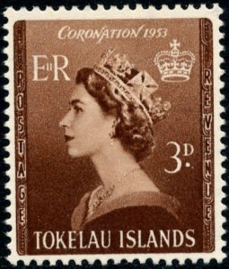 Tokelau Islands gaf echter slechts één postzegel uit in de waarde van 3D met de afbeelding van koningin Elizabeth II.