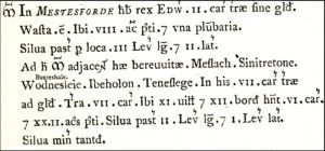 De bovenstaande tekst een slechts een zeer kleine paragraaf uit het enorme boekwerk dat in 1086 in opdracht van Willem de Veroveraar werd samengesteld om een overzicht te verkrijgen van de bezittingen en landeigenaren om belasting te kunnen heffen. Het boek, bestaande uit twee delen, werd in het Middeleeuws Latijn geschreven. Vertegenwoordigers van de koning trokken door heel Engeland om tijdens bijeenkomsten in rechtbanken de landeigenaren te horen aan de hand van een vragenlijst, twintig vragen per bezitting. Het overzicht werd beschouwd als definitief en gold als beslissend zoals op de Dag des Oordeels. Vandaar de naam: Domesday Book.