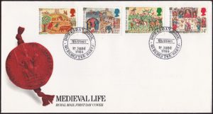 Een serie van vier postzegels ter gelegenheid van het 900 jarige bestaan van het zogenoemde Domesday Book werd uitgegeven op 17 juni 1986. De serie kreeg als tweede titel mee: Het leven in de Middeleeuwen. De postzegels werden ontworpen door Tayburn Design Consultants en vormgegeven door Magnus Lohkamp.