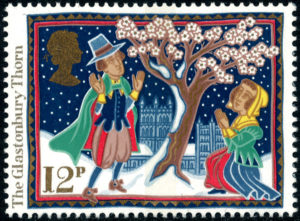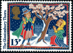 Op de postzegel van 13p de legende over de meidoorn in Glastonbury, graafschap Somerset. Volgens die legende landde Joseph van Arimathea vanuit het Heilige Land op de toenmalige kuststrook wat nu de Wearyall heuvel is en stootte zijn staf in de grond. Deze staf schoot wortel en groeide uit tot een meidoorn. Het wonderlijke was dat de meidoorn twee maal per jaar bloeide. In het voorjaar maar ook met de kerst. Scheuten van de meidoorn werden op verschillende plaatsen geplant, zoals binnen de muren van de in 1539 verwoeste Abdij van Glastonbury.