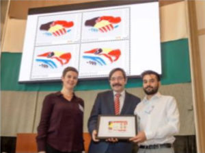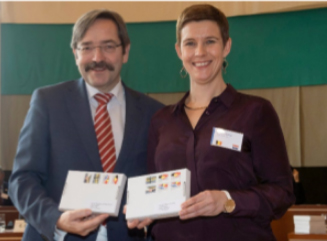 De postzegels zijn ontworpen door studenten van de kunstacademies van Luik en Maastricht. De winnende ontwerpen zijn van Antonio Puglisi (B) en van Quinty Hafkenscheid (NL). De eerste exemplaren werden uitgereikt aan de leden van de rijksgrens-palencommissie, die eveneens in het Gouvernement aanwezig was om het procesverbaal te ondertekenen van de nieuwe ligging van twee grenspalen in het gebied.