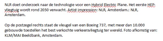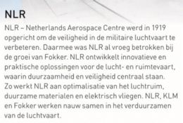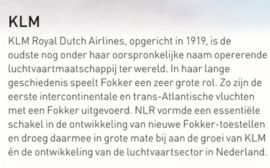 De postzegelontwerper heeft met behulp van het postzegelvel meteen eenheid in de KLM-luchtvloot-emissie aangebracht. Info-ondersteunende tekst over KLM, Fokker & NRL verhoogt het aanzien van het postzegelvel in hoge mate.