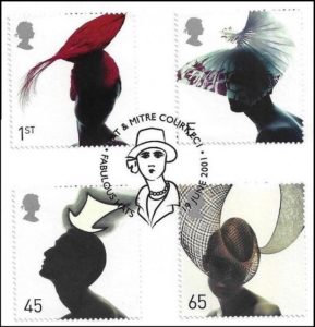 Op 19 juni 2001 gaf Royal Mail een serie van vier postzegels uit met het thema ‘Fabelachtige hoeden’. De postzegels werden ontworpen door Rose Design en gebruik werd gemaakt van foto’s vervaardigd door Nick Knight. De uitgifte viel samen met de ‘hoeden modeshow’ die jaarlijks plaatsvindt in Ascot bij de paardenraces.