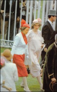 Op de prentkaart is prinses Diana te zien tijdens de paardenraces van Royal Ascot in 1982. Hier droeg zij een hoed vervaardigd door John Boyd. Deze modeontwerper werd op 5 april 1925 geboren in Edinburgh. Zijn meest beroemde klant was prinses Diana. Zijn eerste hoed voor een lid van de koninklijke familie was in 1967 voor prinses Anne. De roze driekantige hoed die hij voor prinses Diana vervaardigde werd wereldwijd gekopieerd en deed de hoedenindustrie die wat achterliep in de mode herleven.