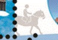 Voor de zwarte forse ‘1’ staat de klokkentoren met zadeldak (1664) van Nes. Ernaast staat de vuurtoren Bornrif (55 meter hoog [1881]) nabij Hollum met rode en witte banden. Op een levendige wijze is het Friese paard met verwaaide manen in de wind in beeld gebracht. Paarden zijn er vroeger voor het zware werk op het land altijd belangrijk geweest. Bij het redden van drenkelingen brachten de paarden de roeireddingboot naar het strand. Tegenwoordig spelen paarden een voorname rol in het toerisme: paardrijden en huifkartochten.
