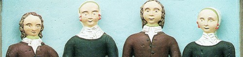 Een informatieve bron meldt: “Twee kinderen uit Medemblik hebben een gouden streepje op hun kleding, dat naar het stadswapen van Medemblik verwijst. De andere twee komen elders vandaan.“ Helaas is nergens bij een van de kinderen het streepje te ontdekken. Beide jongens in donker gekleurde lange jassen hebben wel een streep op hun mouw, maar is niet goudkleurig. Wie kan het verlossende antwoord geven?