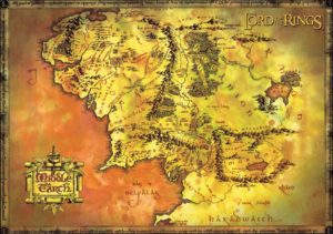 Om alle namen en gebieden te kunnen ‘plaatsen’ is het nodig om de boeken van Tolkien te lezen. De trilogie bestaat uit de delen ‘The Fellowship of the Ring’ verschenen op 29 juli 1954, ‘The Two Towers’, uitgegeven op 11 november 1954 en ‘The Return of the King’, 20 oktober 1955. Eigenlijk is het boek verdeeld in zes delen, per band twee delen. De trilogie is vertaald in 38 talen en vele malen herdrukt. In 2003 werd de trilogie de beste roman van Groot-Brittannië ooit genoemd. De ‘Lord of the Rings’ was inspiratiebron voor films, muziek, videospelletjes en bordspelen. De films werden ook bewerkt voor uitzending op televisie.
