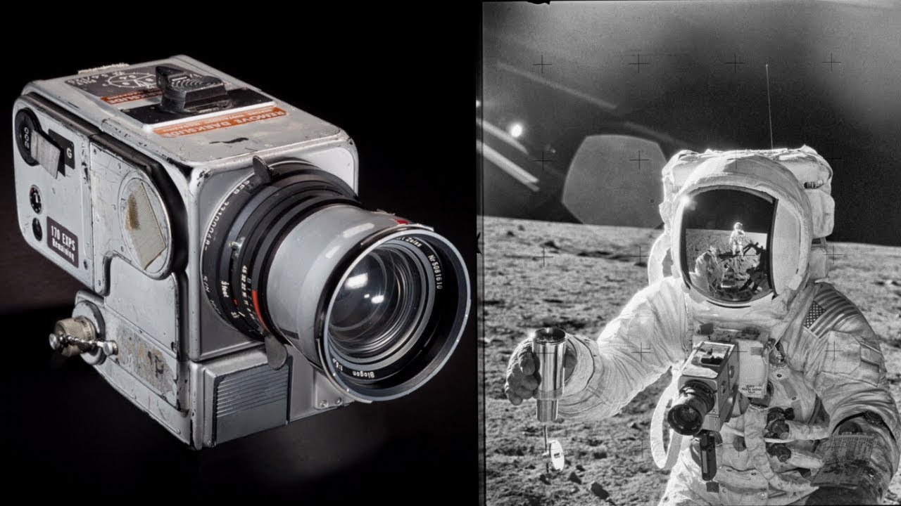 Iedereen vraagt zich af hoe de foto’s gemaakt zijn in de analoge periode. Welke camera is gebruikt en wat is gebeurd met alle camera’s van de Apollo vluchten? Neil Armstrong en Buzz Aldrin hadden twee analoge Hasselblad camera’s van Zweedse makelij bij zich.  De camera’s moesten extreme temperaturen kunnen weerstaan (van min 65 tot plus 120 graden Celsius), hadden automatische doorspoel en een cassette voor 70 opnamen. Op de maan werden ongeveer honderd kleurenfoto’s geschoten. De meeste foto’s werden gemaakt door Armstrong. Van Armstrong zelf zijn vijf foto’s gemaakt. Vanwege NASA-beleid moesten de camera’s op de maan achterblijven, om gewicht te besparen voor de terugreis. Op de maan zijn van alle Apollo vluchten in totaal 12 camera’s te bezichtigen.