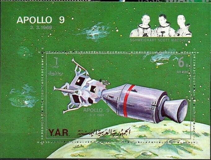 Apollo 9 was een testmissie met alle modules die nodig waren voor een maanlanding. De maanlander (LM, Lunar Module) en de besturingmodule (CSM, Command Service Module) werden in een baan om de aarde gebracht door een Saturnus V-raket. In de ruimte werd de koppeling tussen de LM en de CSM geoefend.