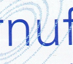 De diagonaal staande reeks concentrische ellipsen draaien ruimtelijk om het groot uitgevoerde ‘ingenieuze-toverwoord’ vernuft. De middelste letter ‘n’ van het woord staat voor het ene deel vóór de ellipsen (met ‘ver’) en voor het andere deel áchter de ellipsen (met ‘uft’).