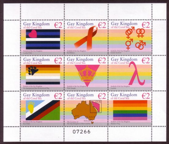 Zie https://nl.wikipedia.org/wiki/Gay_and_Lesbian_Kingdom_of_the_Coral_Sea_Islands