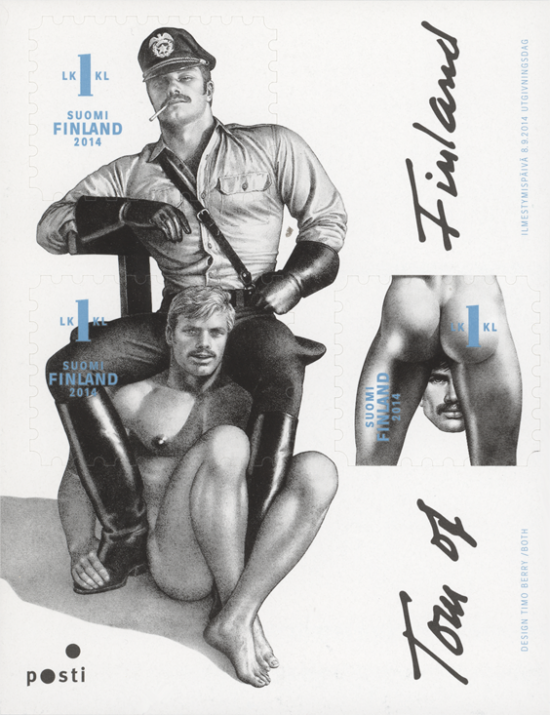 Homo-erotische artiest Touko Laarksonen (1920-1991), gebruikte als pseudoniem ‘Tom of Finland’. Tom was altijd te zien met fetish kleding en legeruniformen van soldaten van de Duitse Wehrmacht, terwijl hij het Finse leger diende tijdens de Tweede Wereldoorlog. Vanaf 1973 werd hij full time tekenaar van ‘gay pornography’. Vooral in de USA was hij populair. In 2014 gaf de Finse Post een velletje uit met drie zegels. Het werd de meest succesvolle uitgave van Finland.