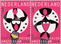 In Europa kent men bovendien nog EuroPride, die afwisselend in een (grote) Europese stad wordt gehouden. Sinds 1991 wijst de European Pride Organisers Association (EPOA), het Verbond van Europese (Gay)Pride Organisatoren, telkenmale een stad aan die dat jaar de EuroPride mag organiseren of de titel mag voeren bij hun eigen te houden Gay Pride activiteit. In 2016 was na 22 jaar EuroPride weer terug in Amsterdam. Reden voor een levendig ontwerp van de twee zegels met waarde 1.