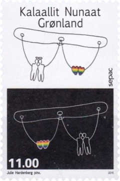 Groenland’s Gay Pride zegel werd uitgegeven in 2015. Vanaf 2010 wordt Nuuk Gay Pride elk jaar gehouden in juni in de vorm van concerten, films en een parade.