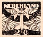 De vliegende duif is een voortzetting, uitwerking en/of vereenvoudiging (stilering) van het luchtpostzegel-ontwerp. Er is een omkering tussen beeld en tekst aangebracht (a.h.w. een negatief). De duif-postzegel bezit een eenvoudige, overzichtelijke en gestroomlijnde compositie, die overeenkomt met de Nederlandse benadering in lijnvoering van de Jugendstil en/of Art Deco. De duidelijkheid en leesbaarheid van de tekst is aanmerkelijk verbeterd t.o.v. de luchtpostzegel.