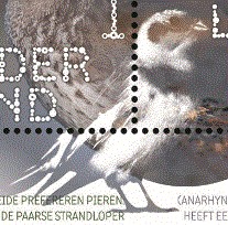 - De borst van de paarse strandloper loopt via de grafische door op de volgende postzegel.