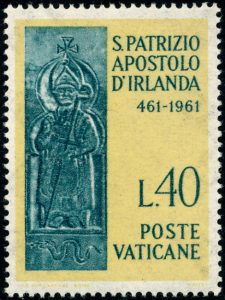 Ondanks dat Saint Patrick formeel nooit heilig is verklaard, heeft de postdienst van het Vaticaan op 6 oktober 1961 een postzegel uitgegeven waarop zijn beeltenis is te zien. Het formeel heilig verklaren gebeurde pas vanaf de tiende eeuw. Maar het merendeel beschouwt hem toch als heilige. De postzegel werd uitgegeven vanwege de sterfdag van Saint Patrick, toen 1500 jaar geleden. Saint Patrick wordt hier de Apostel van Ierland genoemd.
