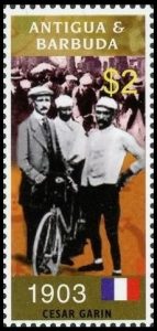 Winnaar van de eerste editie van de Tour was Maurice Garin, afgebeeld op de foto, en duidelijk herkenbaar op de Franse postzegel aan de linkerzijde als renner met de grote snor. De postdienst van Antigua & Barbuda gaf in 2003 een blokje uit ter gelegenheid van 100 jaar Tour de France. Op de postzegel met het jaartal 1903, de eerste editie van de Tour, staat vermeld César Garin. Hij is echter een broer van Maurice Garin, wel wielrenner, maar geen Tourwinnaar! Hij werd tweede in de vijfde etappe van de Tour de France van 1904.