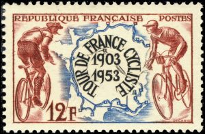 De eerste editie van de Tour de France vond plaats in 1903 georganiseerd door Henri Desgrange, hoofdredacteur van het Franse tijdschrift L’auto. De eerste Tourdirecteur was journalist Georges Lefèvre die het idee had overgeno-men van wielrenner Jean Marie Corre, die in 1895 een lichtgewicht fiets van aluminium testte over een aantal parcours in Frankrijk. In 1953 gaf de Franse Post een postzegel uit ter herdenking van 50 jaar Tour de France.