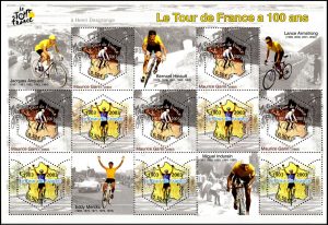 Ter gelegenheid van de 100ste verjaardag van de Tour de France werd in 2003 door de Franse La Poste een blokje uitgegeven met daarin tien postzegels van € 0,50 en vijf vignetten met afbeeldingen van eerdere Tourwinnaars. Op vijf postzegels is de eerste Tourwinnaar Maurice Garin afgebeeld. Op de vignetten de Tourwinnaars Jacques Anquetil, Bernard Hinault, Lance Armstrong, Eddy Merckx en Miguel Indurain.