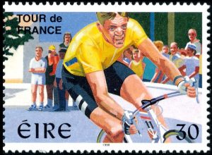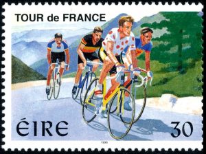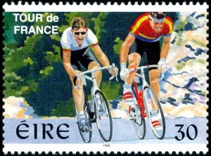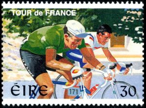 De Ierse postdienst, An Post, gaf op 2 juni 1998 een serie van vier postzegels uit in een strip waardoor een zogenoemde beelddoorloper ontstond waarin de bolletjestrui voor het bergklassement, de witte trui voor het jongerenklassement, de groene trui voor het puntenklassement en de gele trui voor het algemeen klassement mooi zijn verbeeld. De renners waren in 1998 nog niet verplicht een valhelm te dragen maar na het overlijden door een ongeluk van de Kazak Andrei Kivilec in de wedstrijd Parijs-Nice in 2003, werd dit verplicht voor alle profwielrenners.