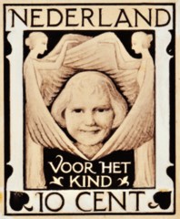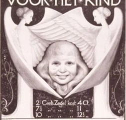 - De eerste kinderpostzegelemissie uit 1924, waarvan ik kortgeleden bij toeval onbekende informatie op Google ontdekte. Het onvolprezen naslagwerk ‘Postwaarden Nederland’ (deelhoofdstuk C3) heeft over het meisje tussen twee engelenfiguren heel weinig informatie verschaft, terwijl daarover wel ontzaglijk veel interessant lezenswaardige informatie bestaat.