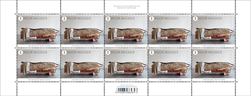 Al enkele jaren kan toonaangevend Belgische kunst op postzegelformaat worden verzameld. Na ondermeer Jef Geys, Michael Borremans, Luc Tuymans en Rinus Van de Velde was 26 oktober de beurt aan de Gentse beeldhouwster Berlinde De Bruyckere. De keuze viel op een kwetsbaar en persoonlijk werk: Walburga, 16 november 18’.19. Er zitten tien identieke zegels in een velletje met de waardeaanduiding 1 (oplage 17.553 velletjes). In al haar werken dragen dualiteit (zoals ook op deze zegel) een belangrijke rol: liefde en lijden, dreiging en bescherming, leven en dood).